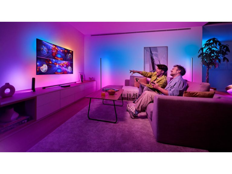 Use your voice, the Hue app, or your TV remote to control your setup.